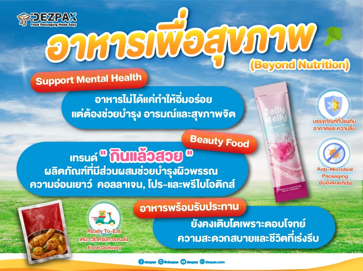 บรรจุภัณฑ์ต้องมีคุณสมบัติที่พิเศษขึ้น Dezpax นำเสนอบรรจุภัณฑ์ที่สามารถ ป้องกันอากาศและความชื้น เพื่อรักษาคุณค่าทางอาหาร รวมถึง Anti-Microbial Packaging ที่ช่วยยับยั้งแบคทีเรีย มั่นใจได้ในความสะอาดและปลอดภัยจนถึงมือลูกค้า