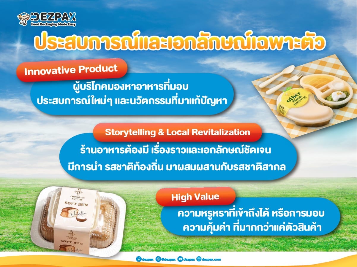 - Storytelling & Local Revitalization ร้านอาหารต้องมีเรื่องราวที่ชัดเจน โดยเฉพาะการนำรสชาติท้องถิ่นมาผสมผสานกับรสชาติสากล